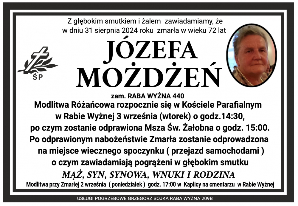 Józefa Możdżeń - Nekrologi - podhale24.pl