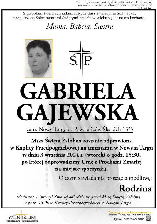 Gabriela Gajewska - Nekrologi - podhale24.pl