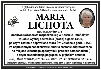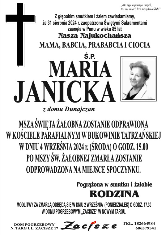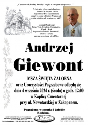 Podhale24.pl zastrzega sobie prawo do nie publikowania wspomnień, w szczególności tych nie związanych z profilem działu nekrologi, zawierających wulgaryzmy, wzywających do zachowań niezgodnych z prawem, obrażających osoby publiczne i prywatne, obrażających inne narodowości, rasy, religie itd, oraz te, bez możliwości telefonicznej lub mailowej weryfikacji ich autora.