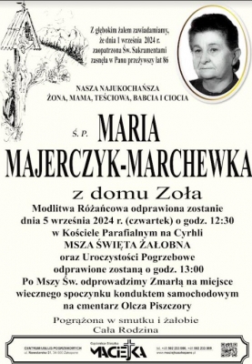 Podhale24.pl zastrzega sobie prawo do nie publikowania wspomnień, w szczególności tych nie związanych z profilem działu nekrologi, zawierających wulgaryzmy, wzywających do zachowań niezgodnych z prawem, obrażających osoby publiczne i prywatne, obrażających inne narodowości, rasy, religie itd, oraz te, bez możliwości telefonicznej lub mailowej weryfikacji ich autora.