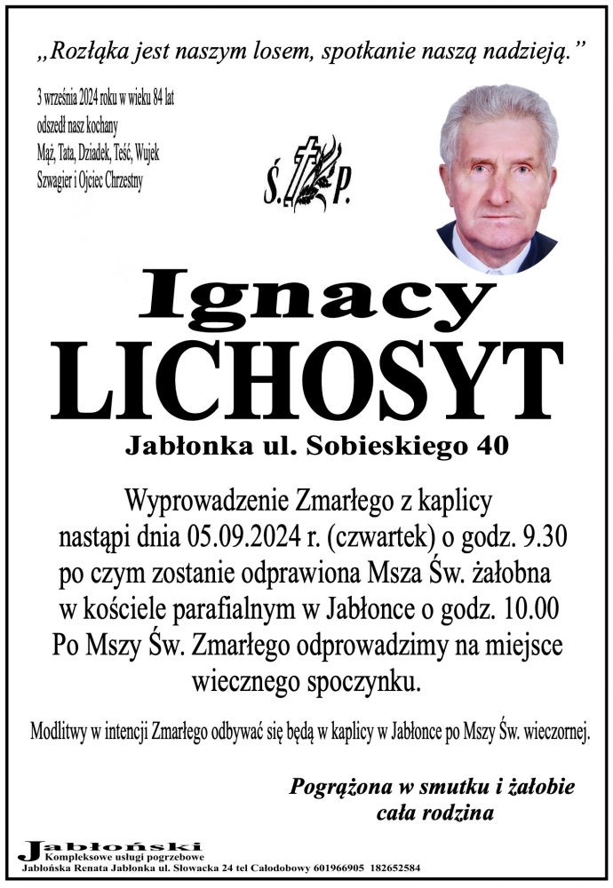 Ignacy Lichosyt - Nekrologi - podhale24.pl