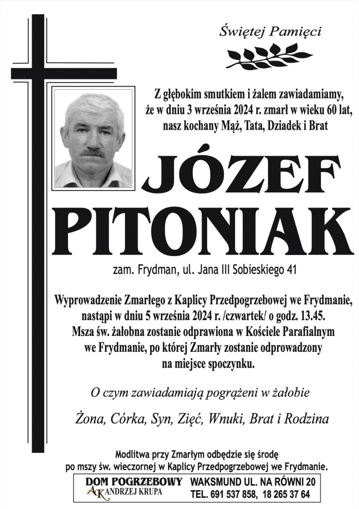 Józef Pitoniak - Nekrologi - podhale24.pl