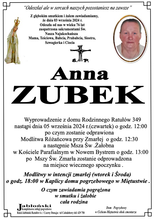 Anna Zubek - Nekrologi - podhale24.pl