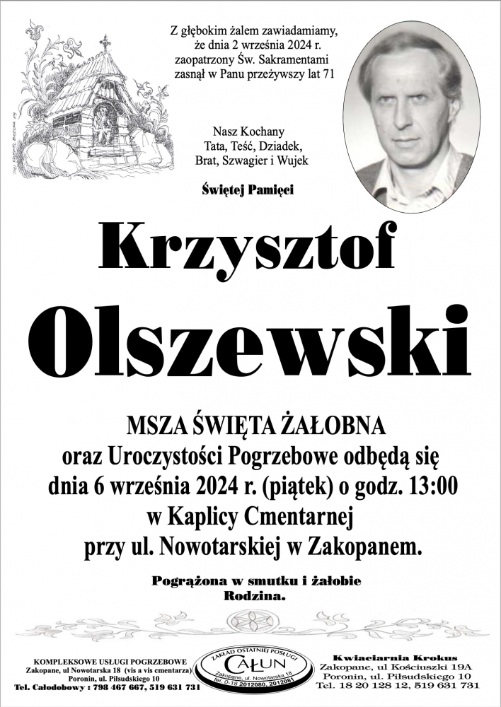 Krzysztof Olszewski - Nekrologi - podhale24.pl