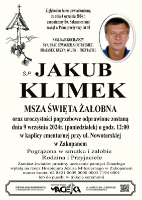 Podhale24.pl zastrzega sobie prawo do nie publikowania wspomnień, w szczególności tych nie związanych z profilem działu nekrologi, zawierających wulgaryzmy, wzywających do zachowań niezgodnych z prawem, obrażających osoby publiczne i prywatne, obrażających inne narodowości, rasy, religie itd, oraz te, bez możliwości telefonicznej lub mailowej weryfikacji ich autora.