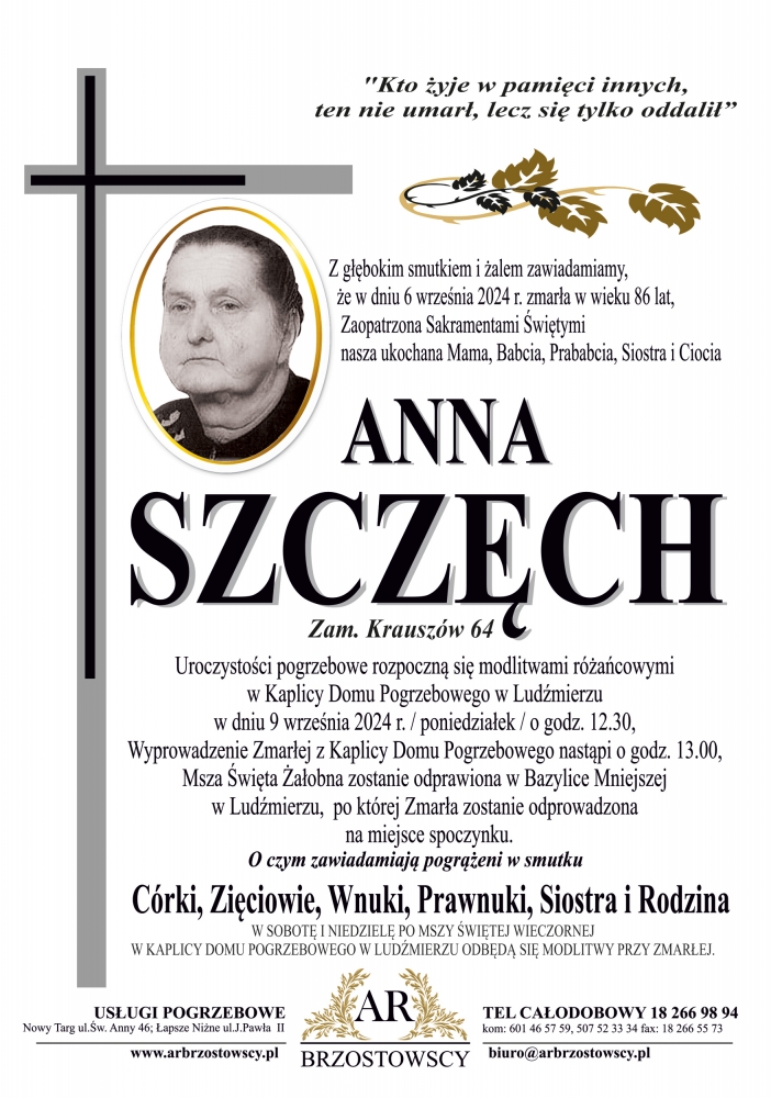 Anna Szczęch - Nekrologi - podhale24.pl