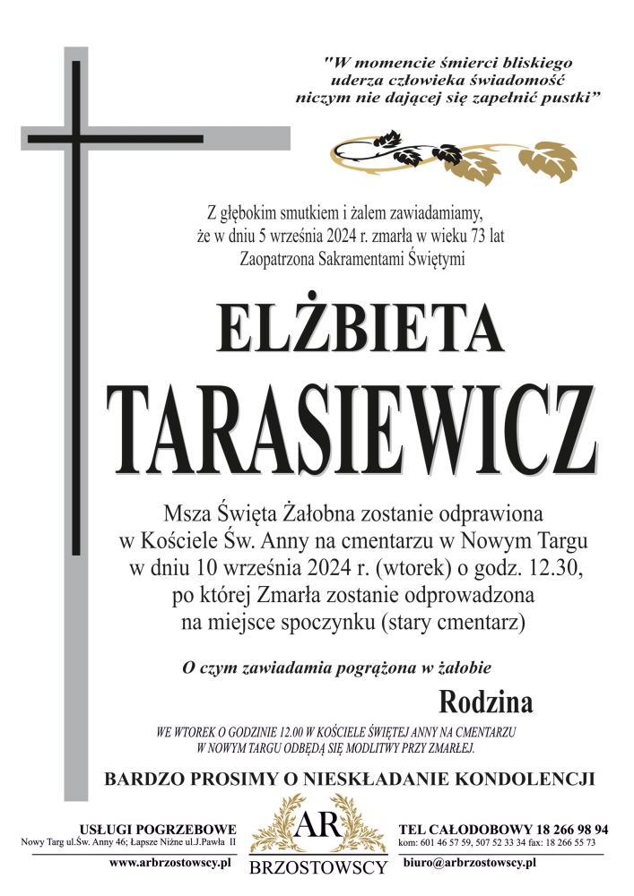 Elżbieta Tarasiewicz - Nekrologi - podhale24.pl
