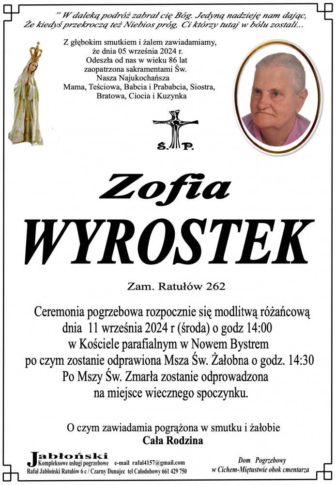 Zofia Wyrostek - Nekrologi - podhale24.pl