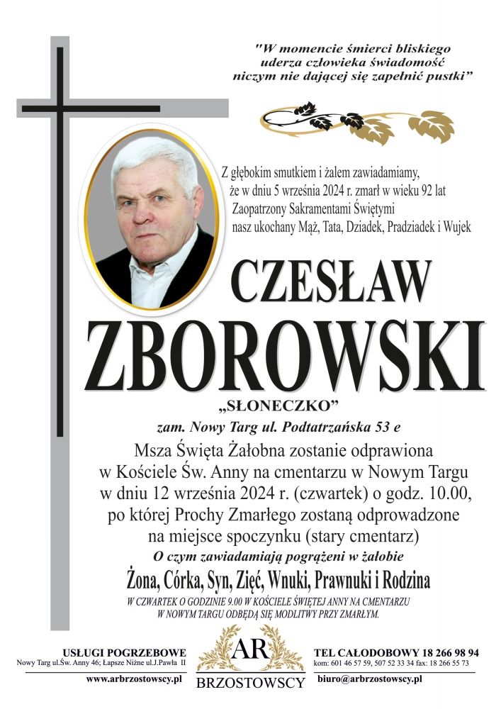 Czesław Zborowski - Nekrologi - podhale24.pl