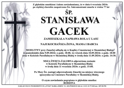 Podhale24.pl zastrzega sobie prawo do nie publikowania wspomnień, w szczególności tych nie związanych z profilem działu nekrologi, zawierających wulgaryzmy, wzywających do zachowań niezgodnych z prawem, obrażających osoby publiczne i prywatne, obrażających inne narodowości, rasy, religie itd, oraz te, bez możliwości telefonicznej lub mailowej weryfikacji ich autora.