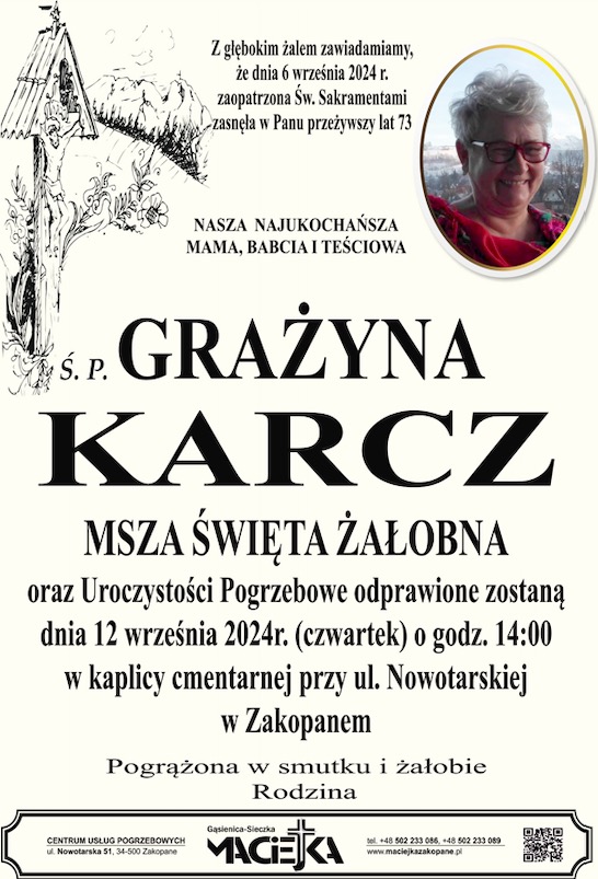 Grażyna Karcz - Nekrologi - podhale24.pl