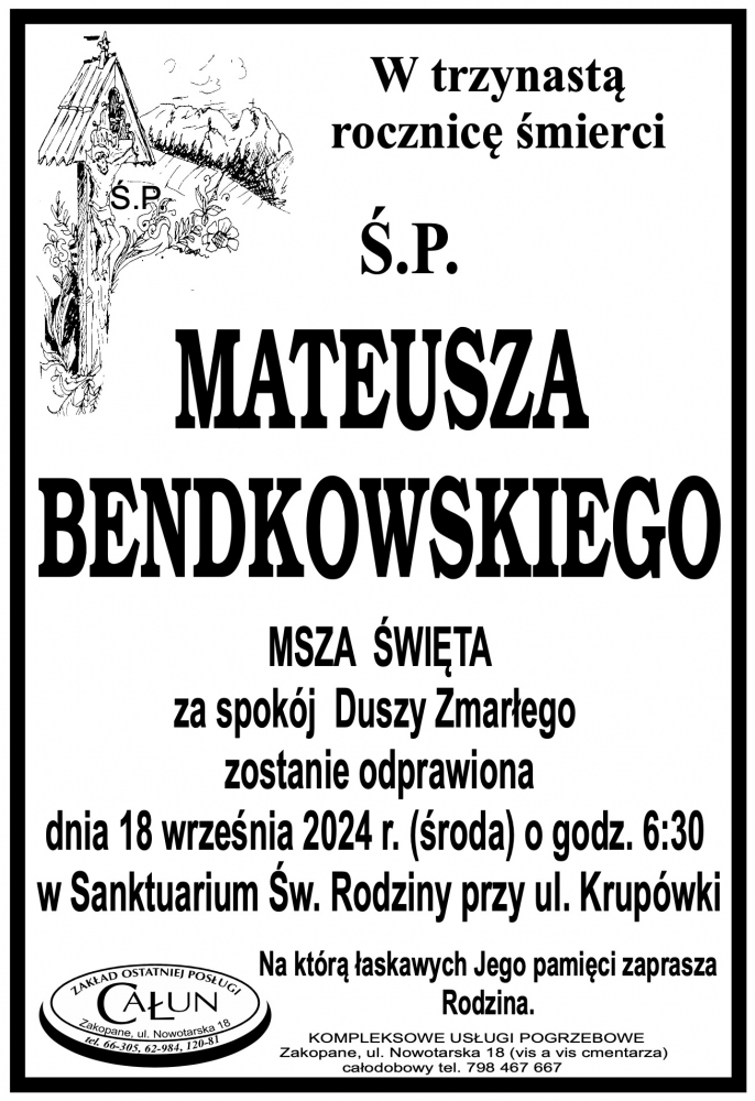 Mateusz Bendkowski - Nekrologi - podhale24.pl
