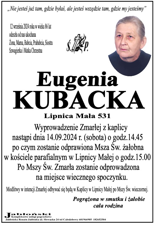 Eugenia Kubacka - Nekrologi - podhale24.pl