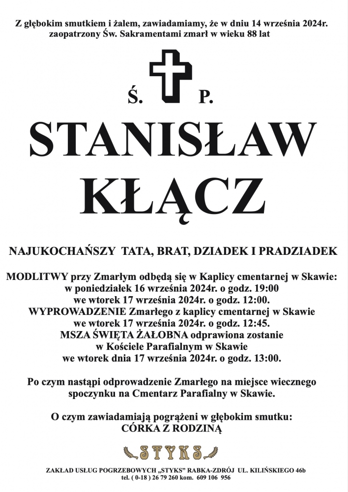 Stanisław Kłącz - Nekrologi - podhale24.pl