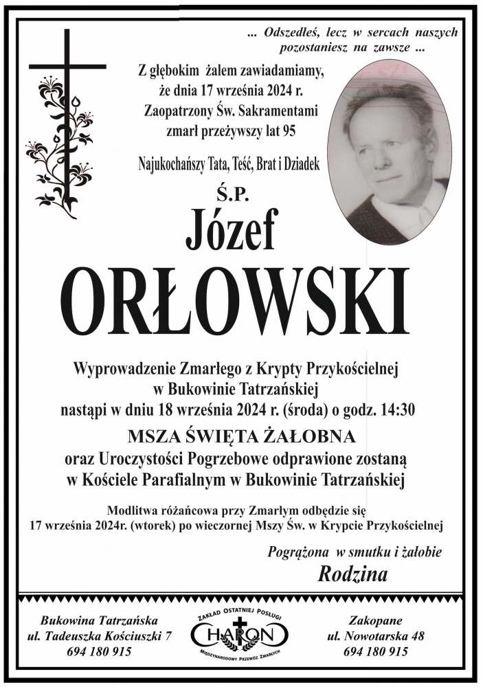 Józef Orłowski - Nekrologi - podhale24.pl