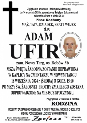 Podhale24.pl zastrzega sobie prawo do nie publikowania wspomnień, w szczególności tych nie związanych z profilem działu nekrologi, zawierających wulgaryzmy, wzywających do zachowań niezgodnych z prawem, obrażających osoby publiczne i prywatne, obrażających inne narodowości, rasy, religie itd, oraz te, bez możliwości telefonicznej lub mailowej weryfikacji ich autora.