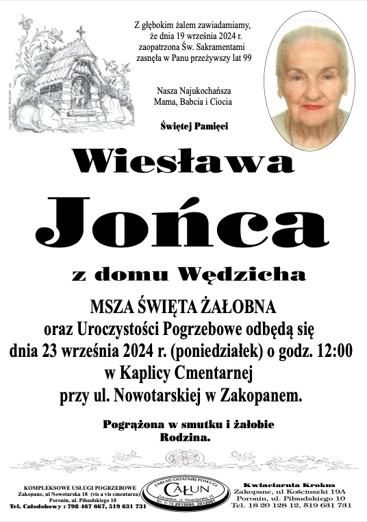 Wiesława Jońca - Nekrologi - podhale24.pl