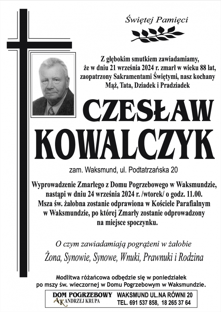 Czesław Kowalczyk - Nekrologi - podhale24.pl