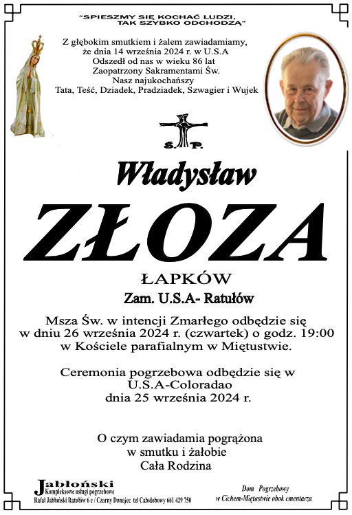 Podhale24.pl zastrzega sobie prawo do nie publikowania wspomnień, w szczególności tych nie związanych z profilem działu nekrologi, zawierających wulgaryzmy, wzywających do zachowań niezgodnych z prawem, obrażających osoby publiczne i prywatne, obrażających inne narodowości, rasy, religie itd, oraz te, bez możliwości telefonicznej lub mailowej weryfikacji ich autora.