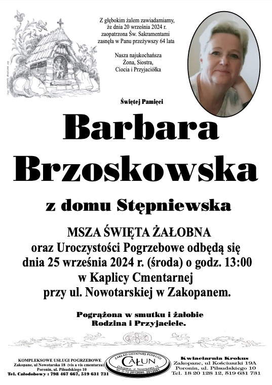 Barbara Brzoskowska - Nekrologi - podhale24.pl