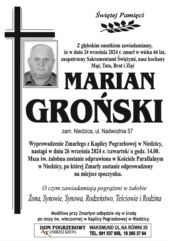 Podhale24.pl zastrzega sobie prawo do nie publikowania wspomnień, w szczególności tych nie związanych z profilem działu nekrologi, zawierających wulgaryzmy, wzywających do zachowań niezgodnych z prawem, obrażających osoby publiczne i prywatne, obrażających inne narodowości, rasy, religie itd, oraz te, bez możliwości telefonicznej lub mailowej weryfikacji ich autora.