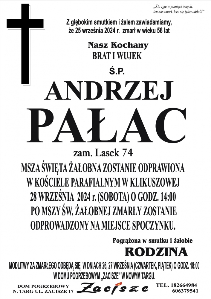 Andrzej Pałac - Nekrologi - podhale24.pl