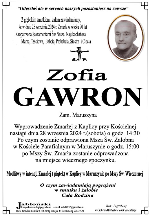 Podhale24.pl zastrzega sobie prawo do nie publikowania wspomnień, w szczególności tych nie związanych z profilem działu nekrologi, zawierających wulgaryzmy, wzywających do zachowań niezgodnych z prawem, obrażających osoby publiczne i prywatne, obrażających inne narodowości, rasy, religie itd, oraz te, bez możliwości telefonicznej lub mailowej weryfikacji ich autora.