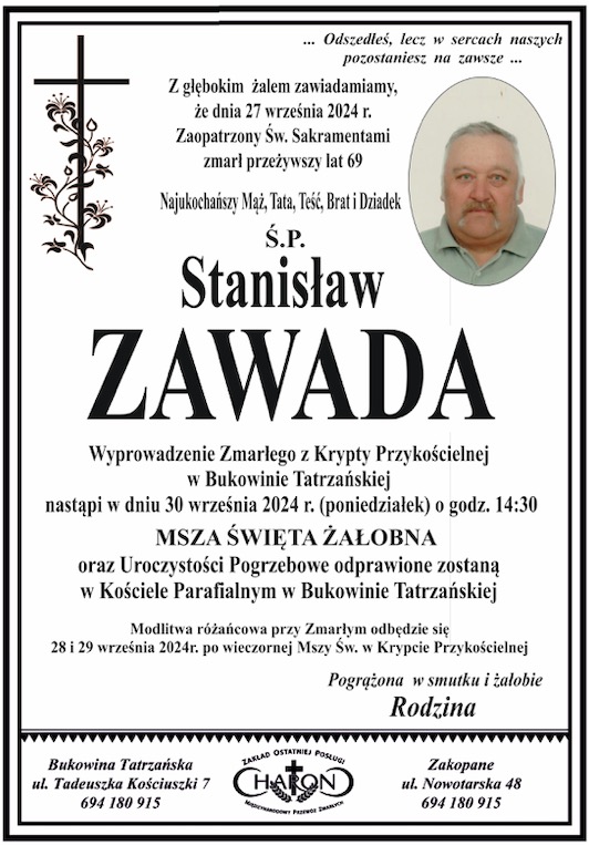 Stanisław Zawada - Nekrologi - podhale24.pl
