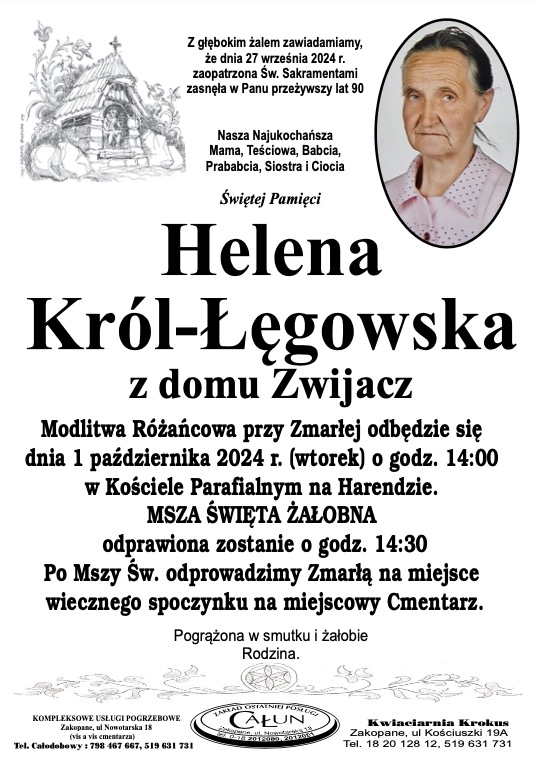 Helena Król-Łęgowska - Nekrologi - podhale24.pl