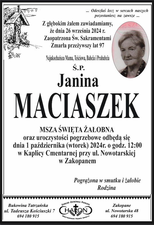 Janina Maciaszek - Nekrologi - podhale24.pl