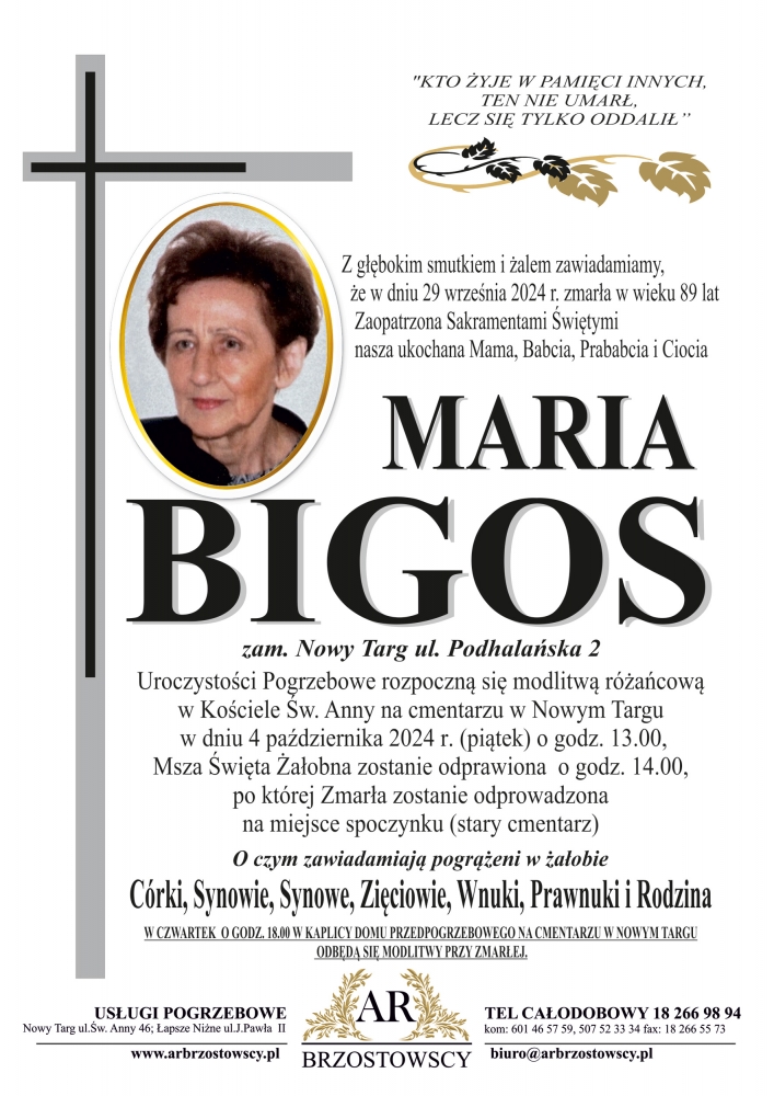 Maria Bigos - Nekrologi - podhale24.pl