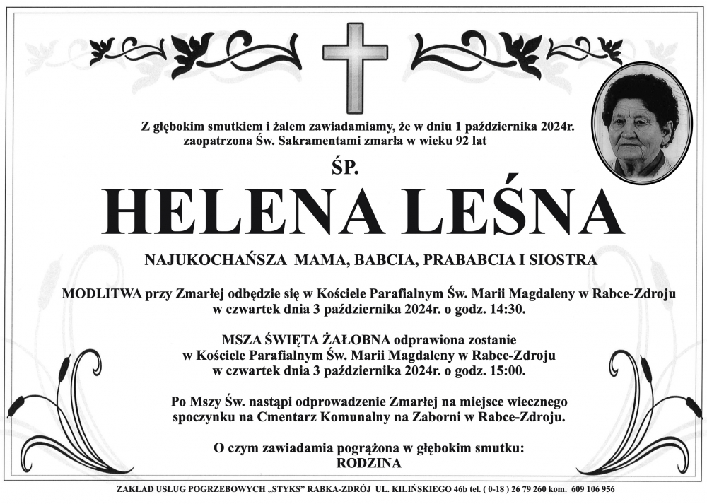 Helena Leśna - Nekrologi - podhale24.pl