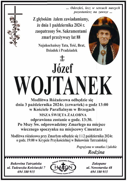 Józef Wojtanek - Nekrologi - podhale24.pl