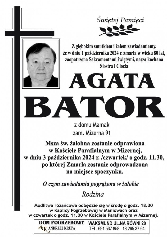 Agata Bator - Nekrologi - podhale24.pl