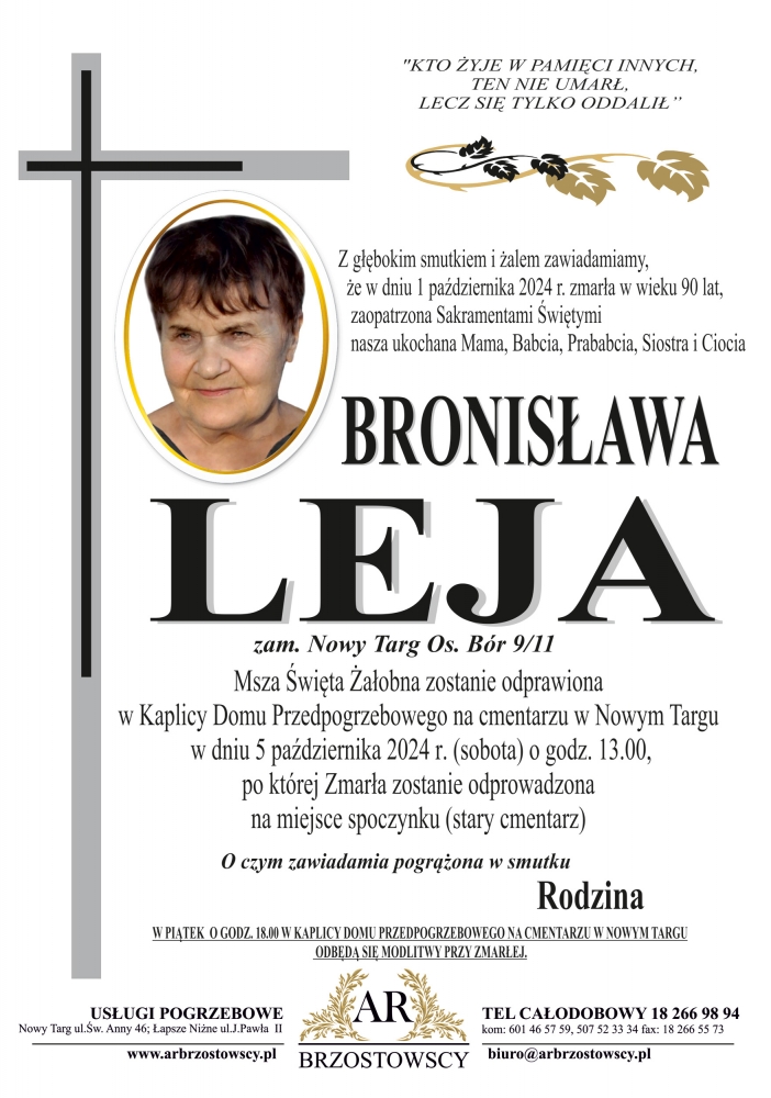 Bronisława Leja - Nekrologi - podhale24.pl