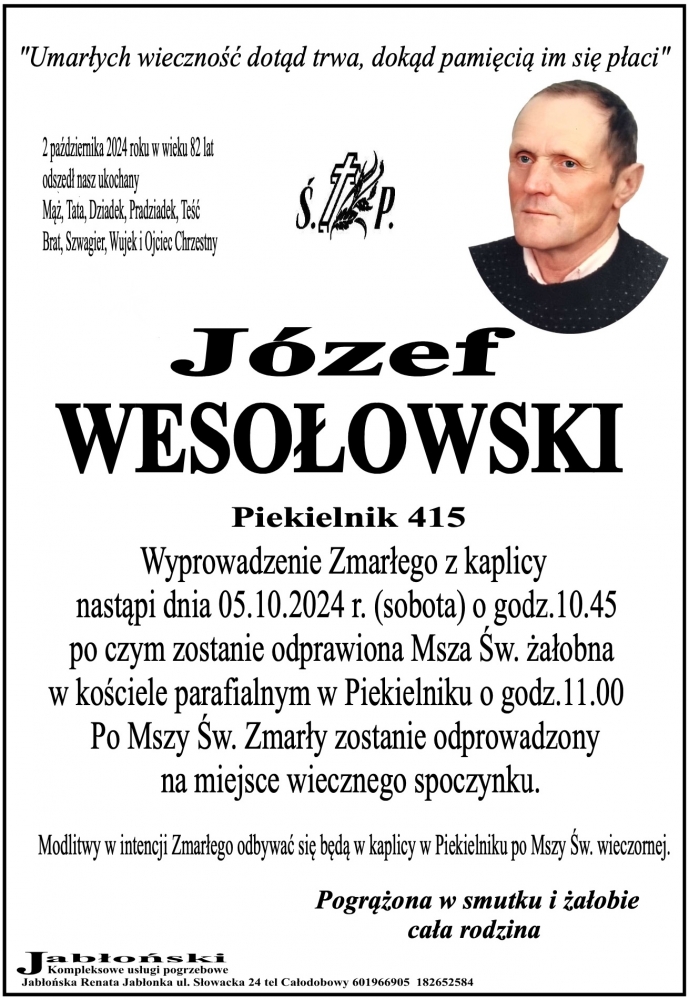 Józef Wesołowski - Nekrologi - podhale24.pl