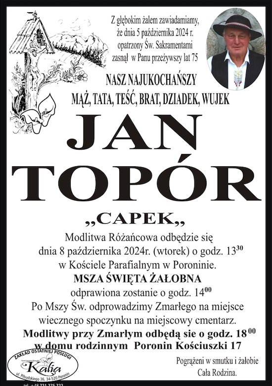 Jan Topór - Nekrologi - podhale24.pl