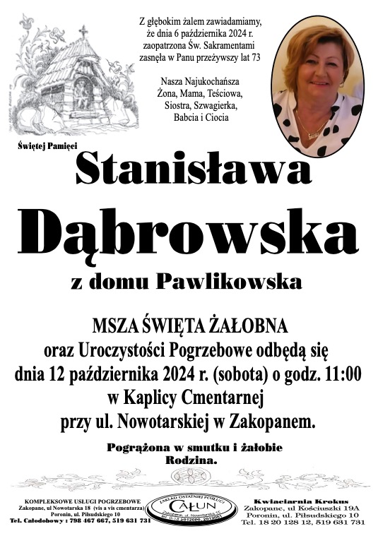 Stanisława Dąbrowska - Nekrologi - podhale24.pl