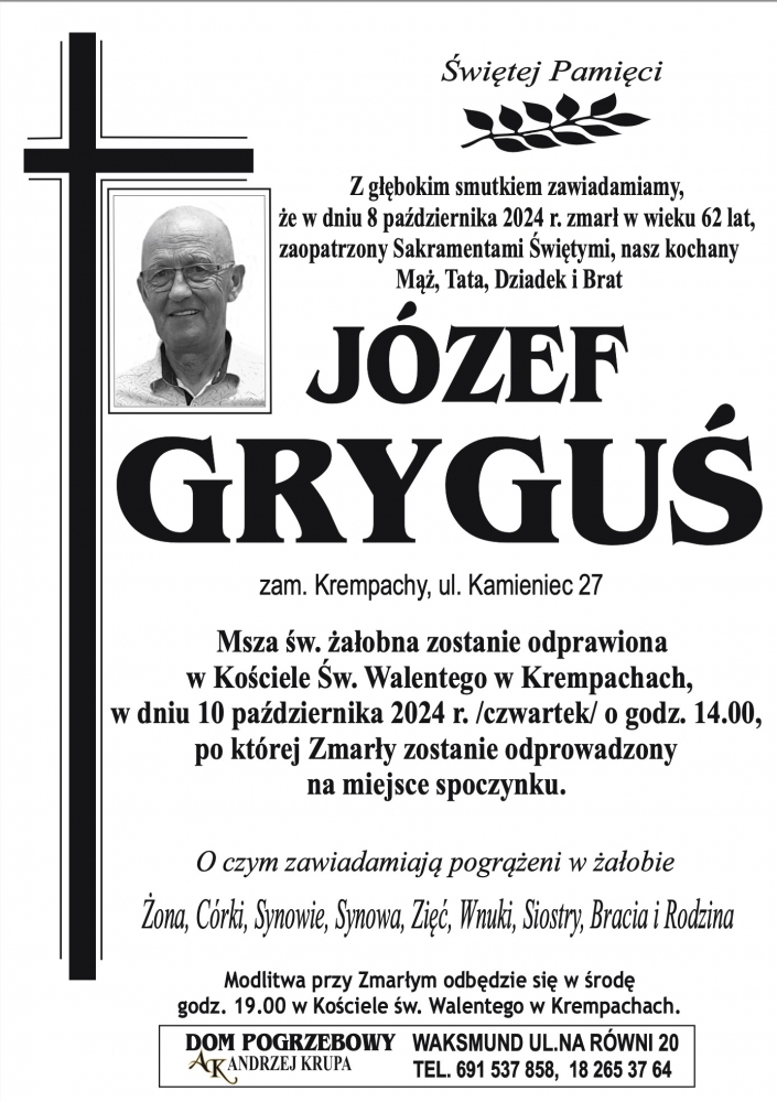 Podhale24.pl zastrzega sobie prawo do nie publikowania wspomnień, w szczególności tych nie związanych z profilem działu nekrologi, zawierających wulgaryzmy, wzywających do zachowań niezgodnych z prawem, obrażających osoby publiczne i prywatne, obrażających inne narodowości, rasy, religie itd, oraz te, bez możliwości telefonicznej lub mailowej weryfikacji ich autora.