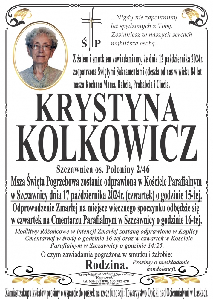 Krystyna Kolkowicz - Nekrologi - podhale24.pl