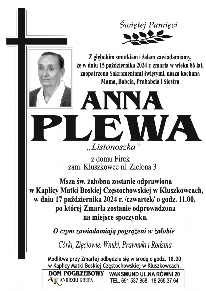 Anna Plewa - Nekrologi - podhale24.pl