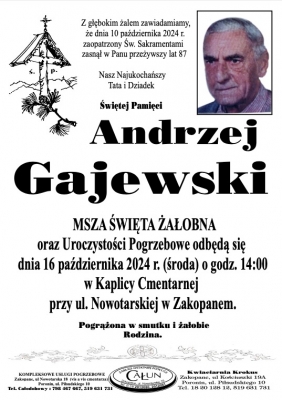 Podhale24.pl zastrzega sobie prawo do nie publikowania wspomnień, w szczególności tych nie związanych z profilem działu nekrologi, zawierających wulgaryzmy, wzywających do zachowań niezgodnych z prawem, obrażających osoby publiczne i prywatne, obrażających inne narodowości, rasy, religie itd, oraz te, bez możliwości telefonicznej lub mailowej weryfikacji ich autora.