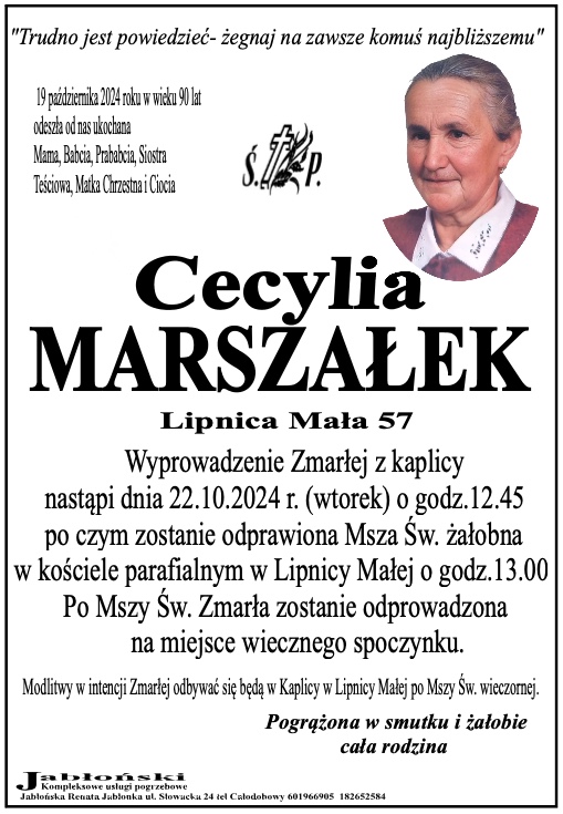 Cecylia Marszałek - Nekrologi - podhale24.pl