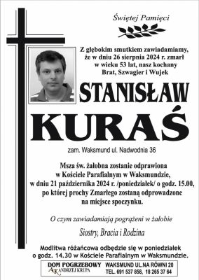 Podhale24.pl zastrzega sobie prawo do nie publikowania wspomnień, w szczególności tych nie związanych z profilem działu nekrologi, zawierających wulgaryzmy, wzywających do zachowań niezgodnych z prawem, obrażających osoby publiczne i prywatne, obrażających inne narodowości, rasy, religie itd, oraz te, bez możliwości telefonicznej lub mailowej weryfikacji ich autora.