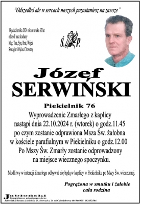 Podhale24.pl zastrzega sobie prawo do nie publikowania wspomnień, w szczególności tych nie związanych z profilem działu nekrologi, zawierających wulgaryzmy, wzywających do zachowań niezgodnych z prawem, obrażających osoby publiczne i prywatne, obrażających inne narodowości, rasy, religie itd, oraz te, bez możliwości telefonicznej lub mailowej weryfikacji ich autora.