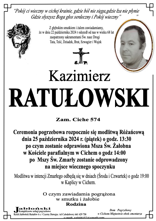 Kazimierz Ratułowski - Nekrologi - podhale24.pl
