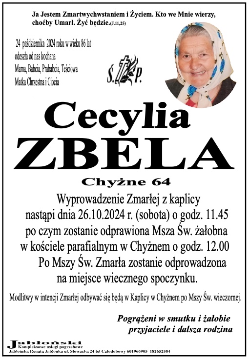 Cecylia Zbela - Nekrologi - podhale24.pl