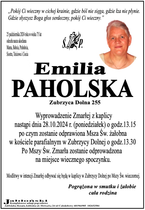 Emilia Paholska - Nekrologi - podhale24.pl