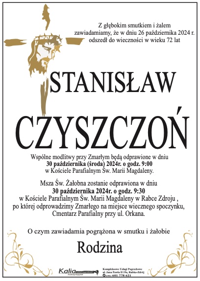 Stanisław Czyszczoń - Nekrologi - podhale24.pl