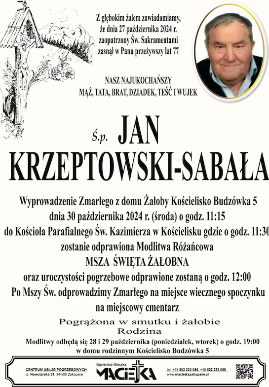 Jan Krzeptowski-Sabała - Nekrologi - podhale24.pl